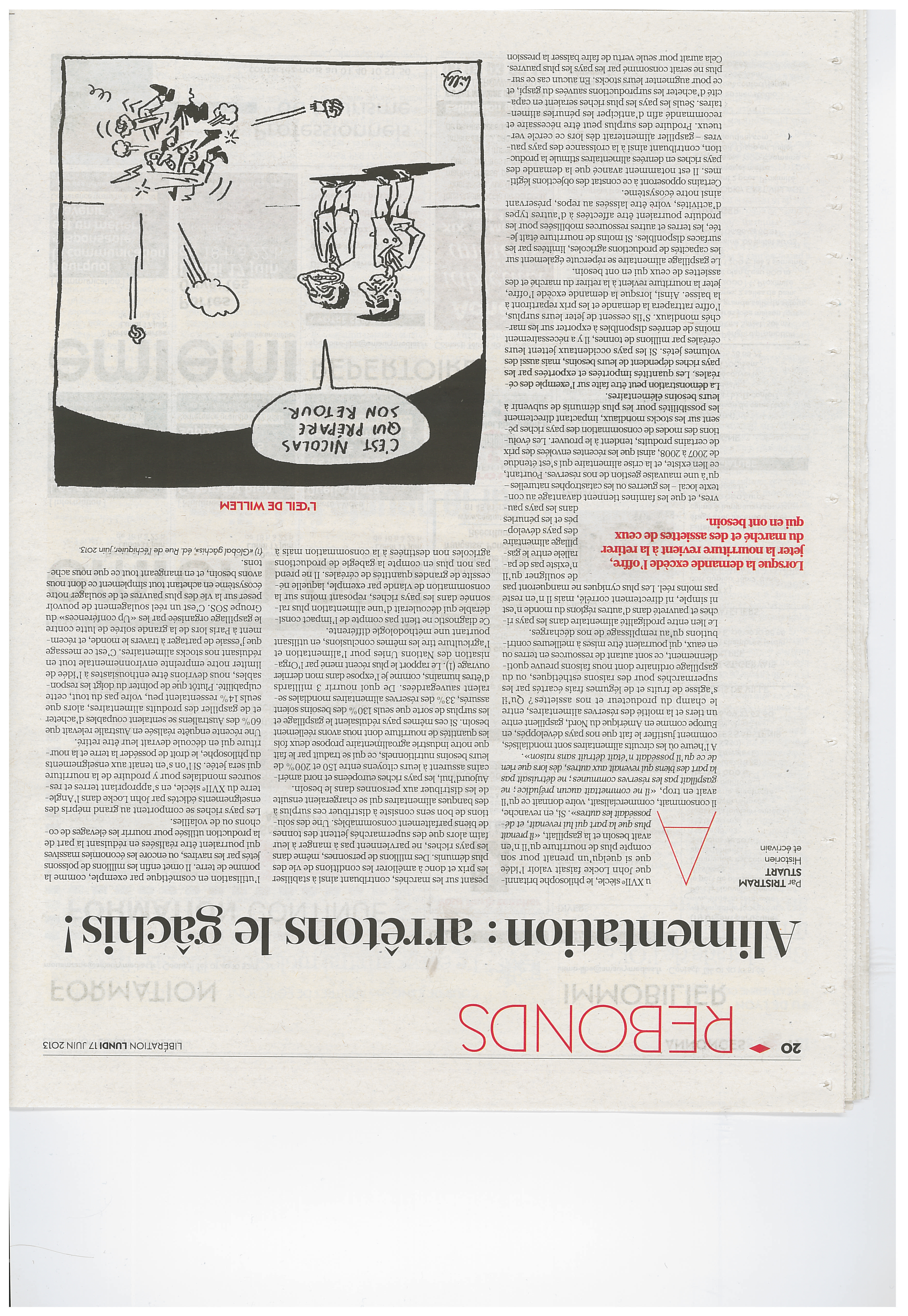 Alors qu'un milliard d'êtres humains souffre de malnutrition, c'est près d'un tiers de la production mondiale de nourriture qui est jetée ou perdue. Cet ouvrage, désormais référence internationale, aide à comprendre les causes et les enjeux de ce gaspillage. Car c'est la structure même de notre chaîne alimentaire qui est à l'origine d'un phénomène « moralement condamnable et économiquement suicidaire ». D'un côté, les pays occidentaux jettent des millions de tonnes de denrées à la poubelle ; de l'autre, les agriculteurs des pays en développement manquent souvent de moyens techniques pour conserver, transporter et commercialiser leur production. Les tensions sur le marché alimentaire mondial s'aggravent et se répercutent sur la capacité des plus démunis à se nourrir. Les conséquences sont aussi environnementales : déforestation, émissions de gaz à effet de serre, pénuries d'eau, etc.