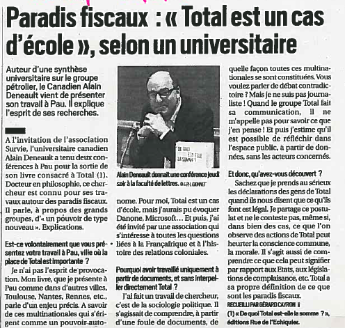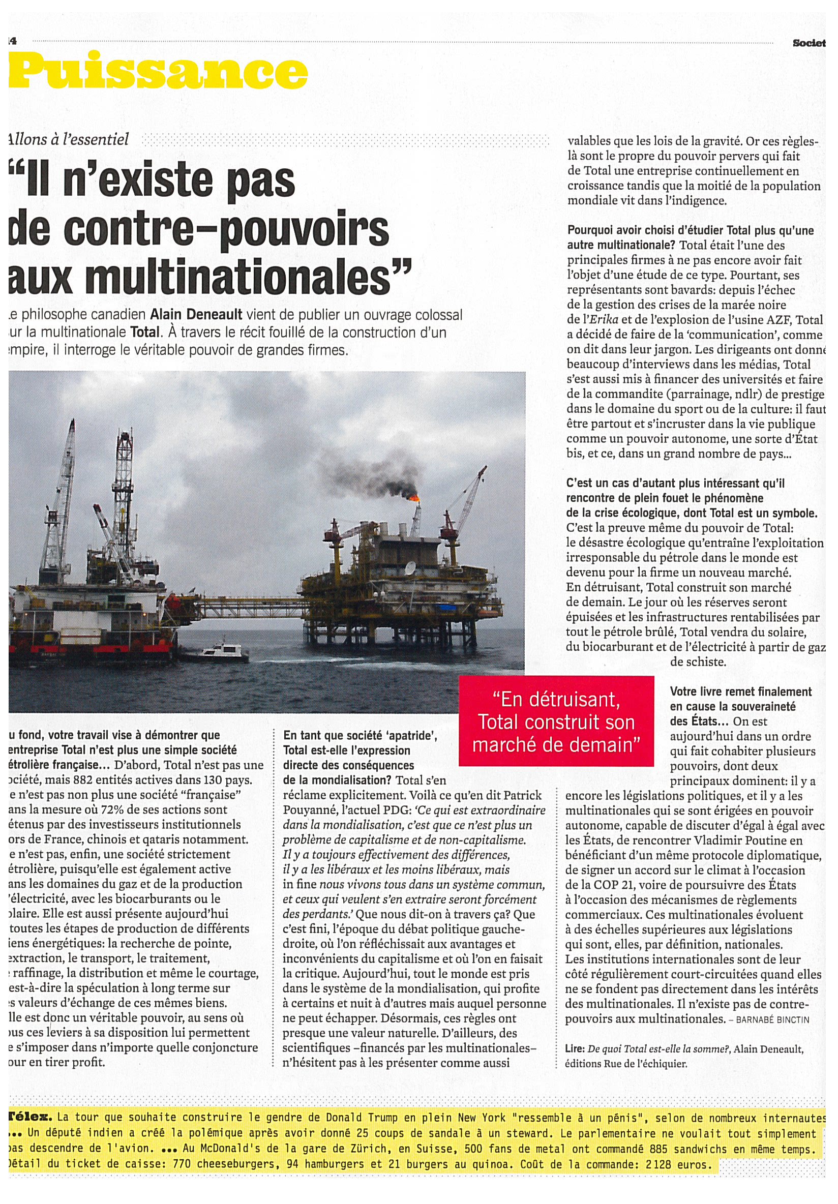 Ce qui est très loin de convaincre le philosophe québécois Alain Deneault, auteur d’un essai cinglant "De quoi Total est-elle la somme ?" (Rue de l’échiquier, 2017), pour qui cette stratégie est avant tout destinée à couper court à toute forme de critique. “Si vous donnez un petit peu d’argent à une association, si vous financez un musée, un programme patrimonial, une compétition de football, les bénéficiaires oseront moins mordre la main les nourrissant.”