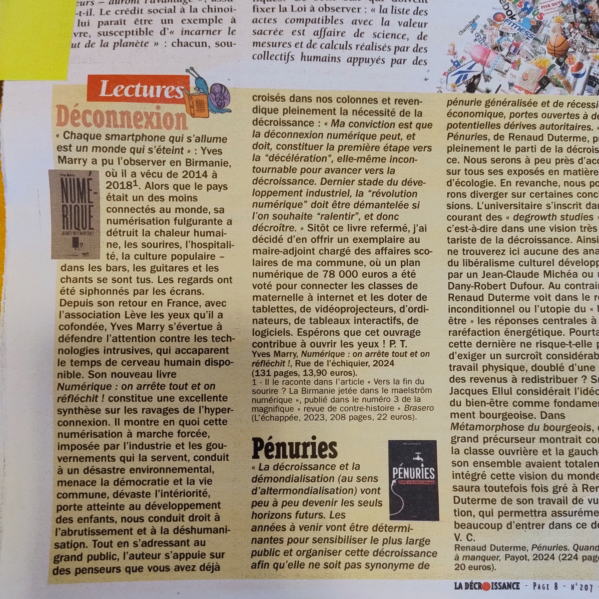 « Yves Marry lutte contre la surexposition aux écrans et plaide pour un éveil des consciences. Édifiant. »