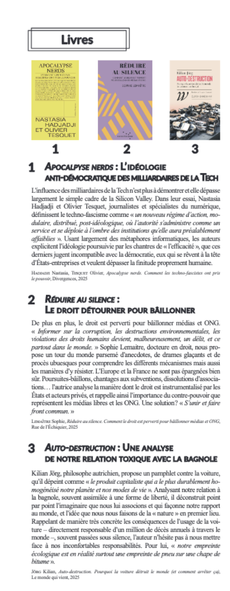 « J'ai trouvé que Réduire au silence était une lecture essentielle : ça permet de faire un constat sur l’affaiblissement de nos démocraties. » Inès Léraud, journaliste et autrice des Algues Vertes
