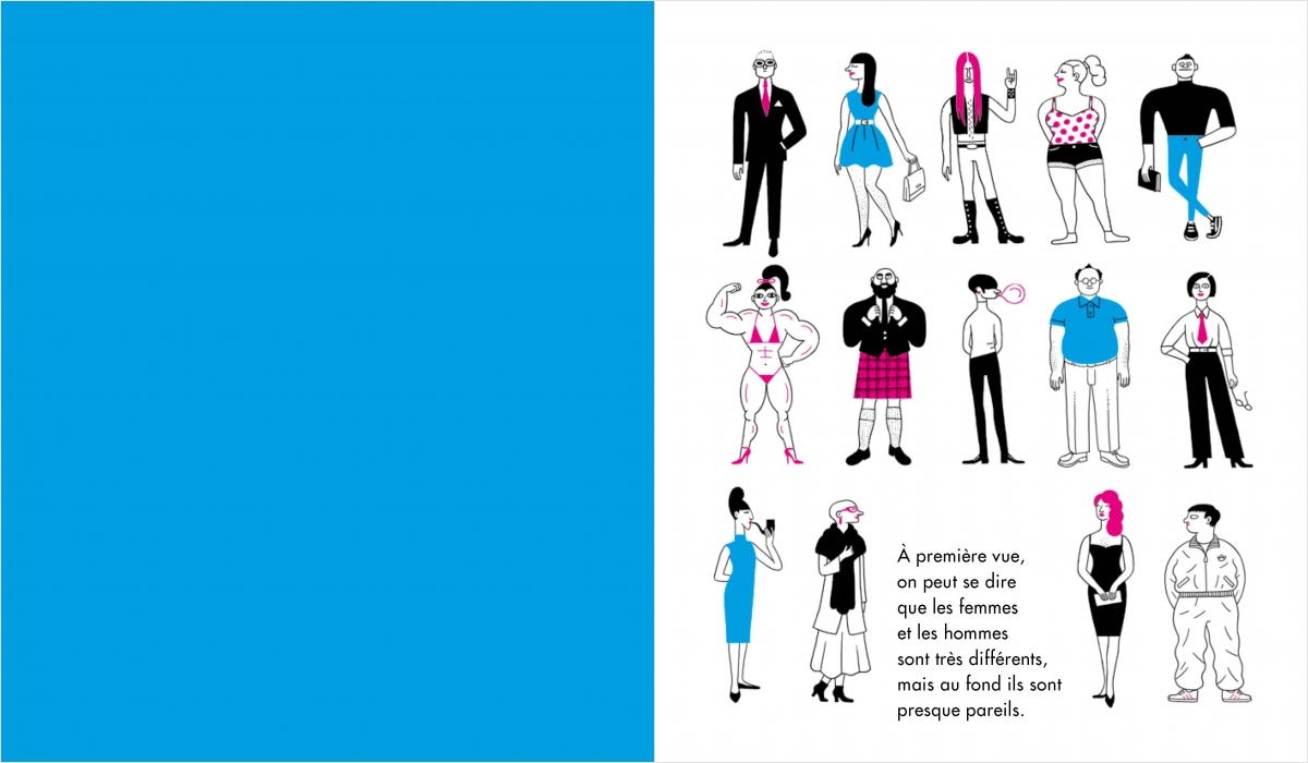 Les hommes ont l’air plus forts, les femmes ont l’air plus fragiles. Mais ce n’est pas vrai : la seule chose qui différencie les femmes et les hommes, c’est leur genre. Rien à voir avec l’intelligence, le travail ou le courage.