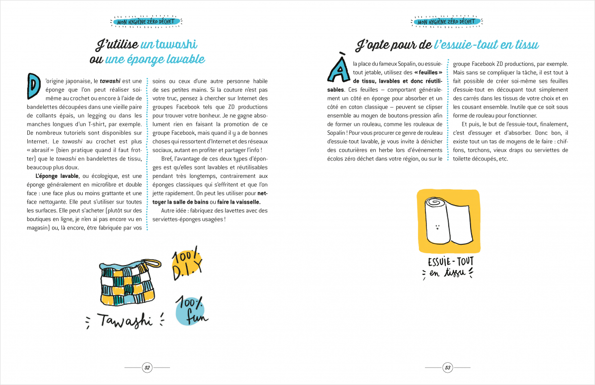Illustré avec humour par Angel Anji, le livre est rythmé par de nombreuses astuces, sous forme de conseils pratiques ou de recettes, pour encourager chacun à passer à un quotidien zéro déchet.
